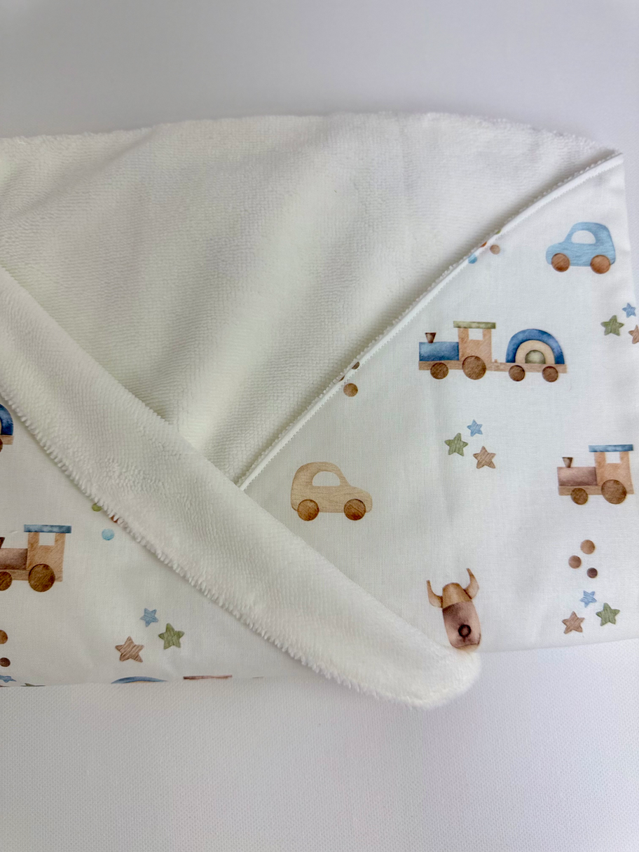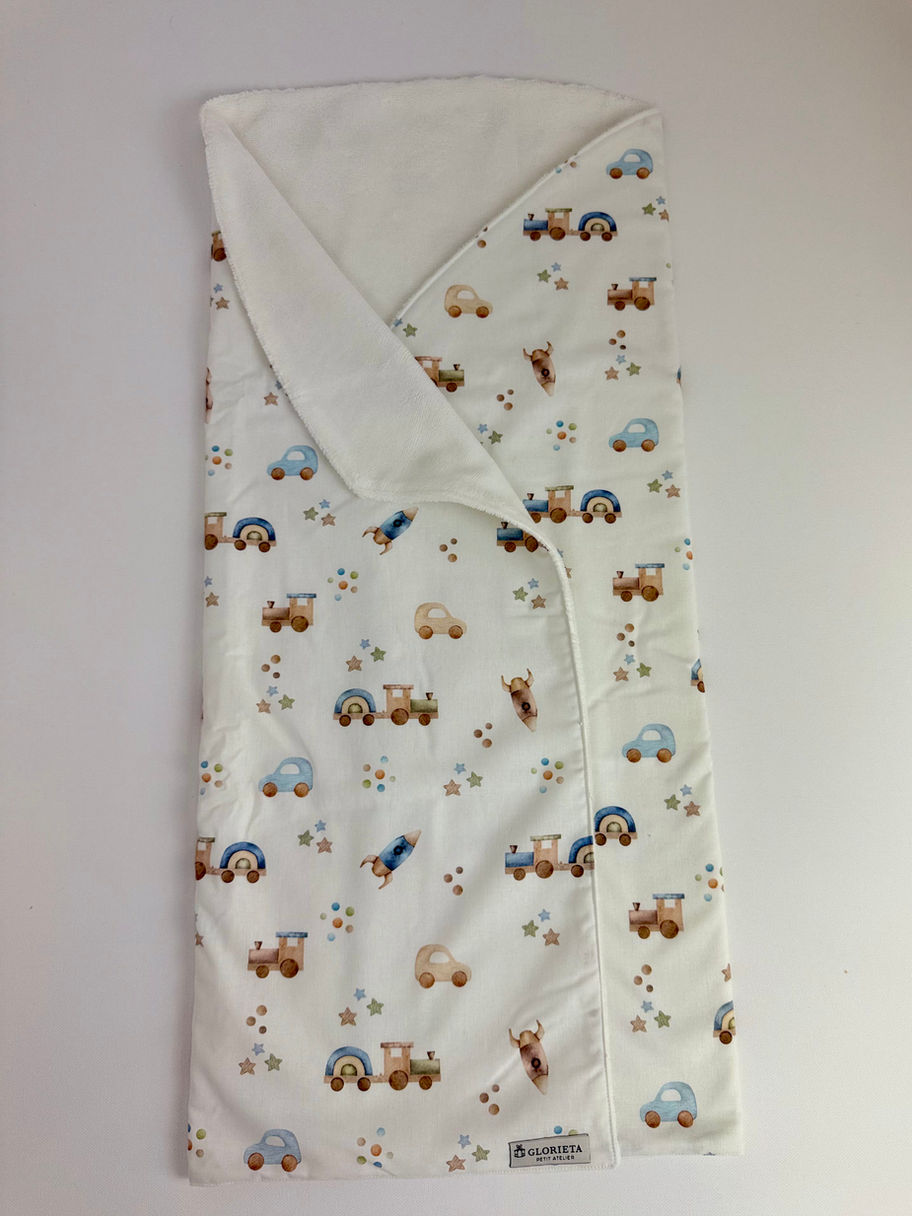 Nuestro arrullo es el complemento perfecto para envolver a tu recién nacido. Con un tacto suave y una calidez envolvente, se convertirá en un artículo imprescindible gracias a su ligereza. Sus dimensiones son ideales para colocar a los pies del moisés, permitiéndote tenerlo siempre a mano cuando levantes a tu bebé, quien se sentirá protegido y acogido.